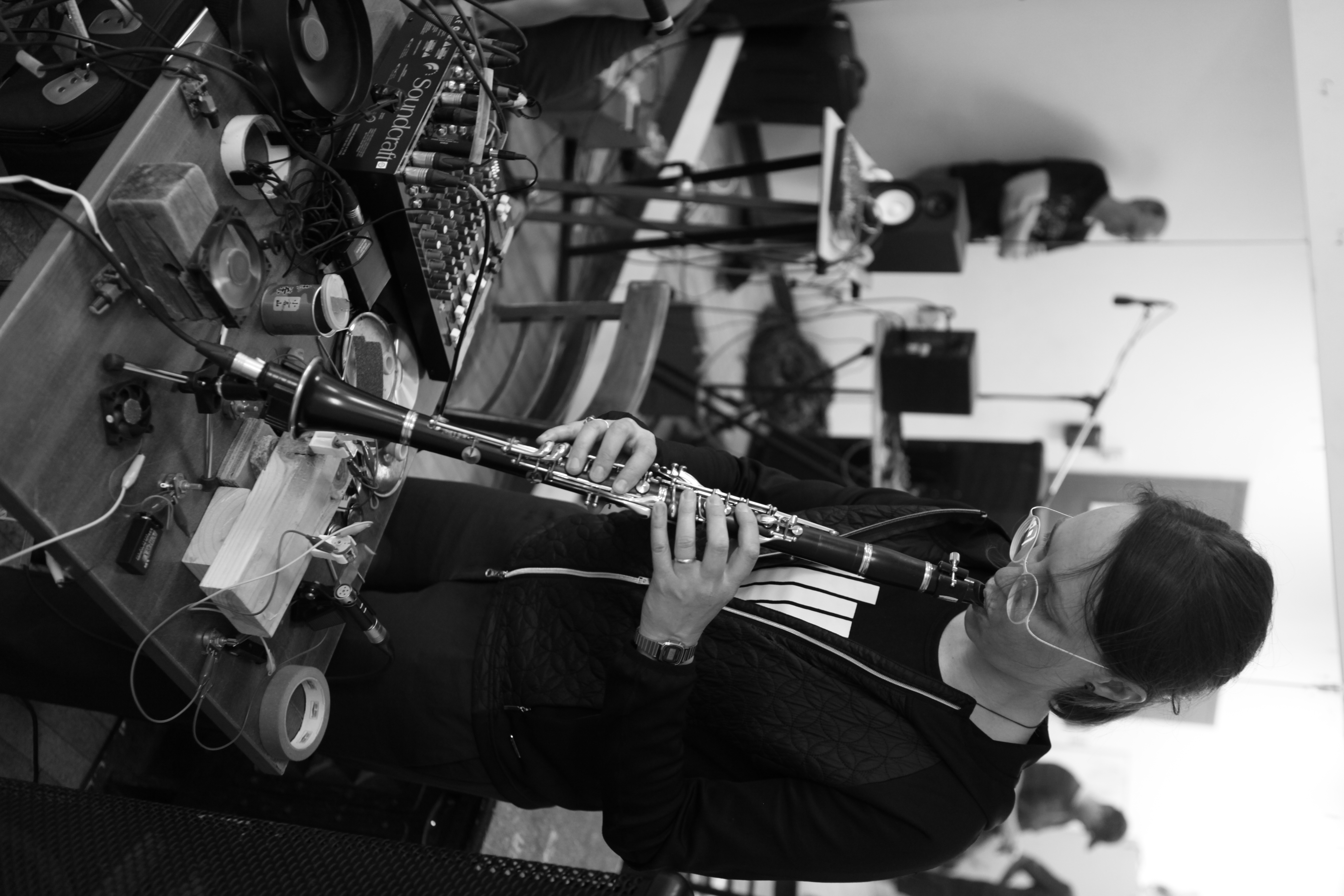 In her solo project, Elizabeth Millar combines the sounds of amplified fans, propellers and clarinet, acoustic and electronic sounds of sustained mechanical hums, metal surfaces, air and breath.