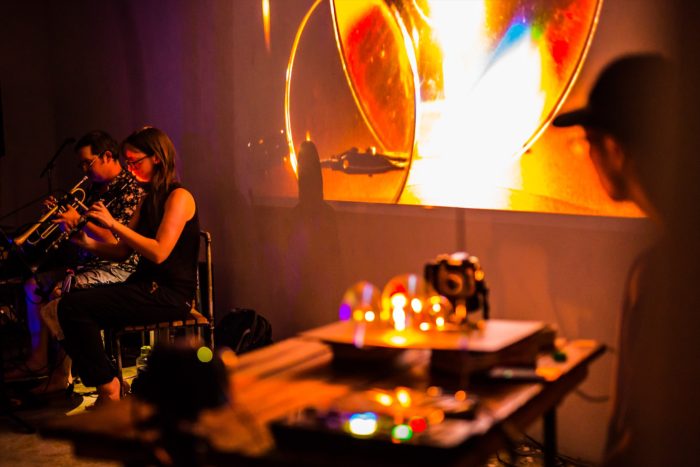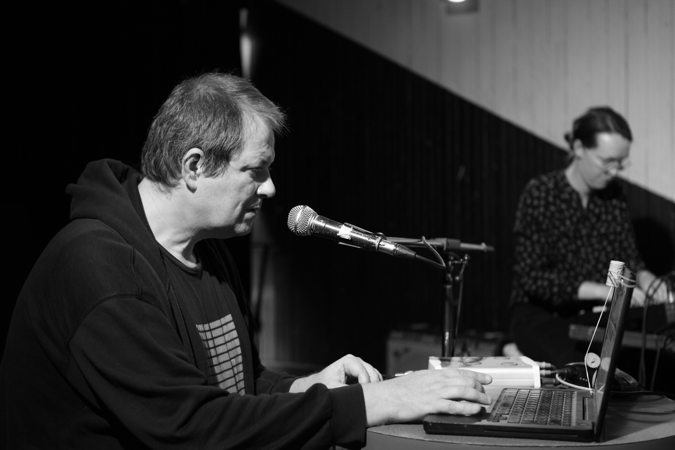 Elizabeth Millar with Christof Kurzmann at the Suoni Per Il Popolo Festival 2019, Montreal. Photo by Martin Greizis